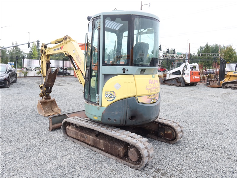 MINI EXCAVATOR, 24.1 HP 3TNE82A-EBVC, SWING BOOM, AUX HYD, 20" BUCKET, PIN GRABBER, HYD THUMB, BLADE, RUBBER TRACKS, CAB
