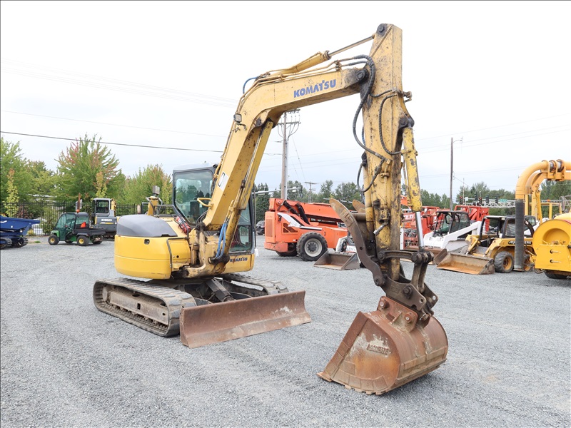 HYDRAULIC EXCAVATOR, 57 HP, S4D95LE-3, SWING BOOM, AUX HYD, 39" BUCKET, PIN GRABBER, HYD THUMB, A/C CAB
