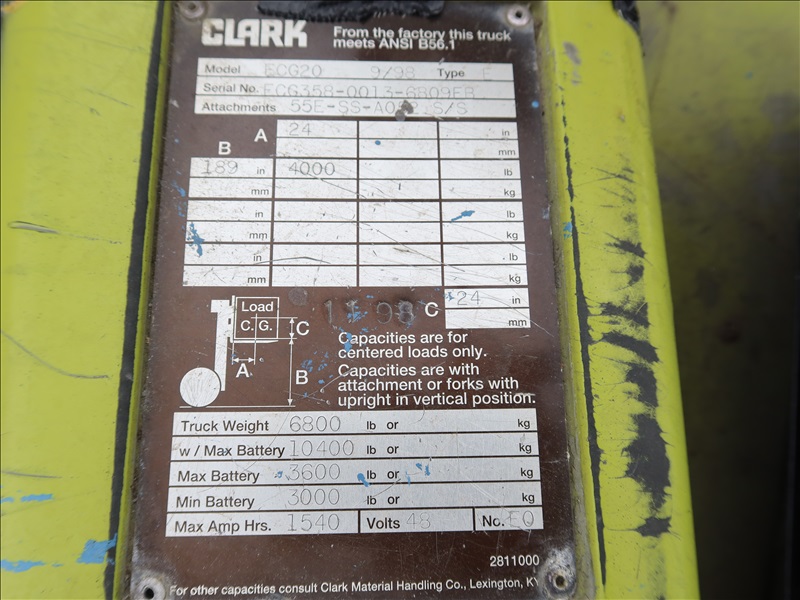 48V, 4,000 LB HRT ELECTRIC FORKLIFT, 189" LIFT HEIGHT, 3-STAGE MAST, SIDE SHIFT (INOPERABLE, NO KEY, NEEDS REPAIR, PLEASE PREVIEW)