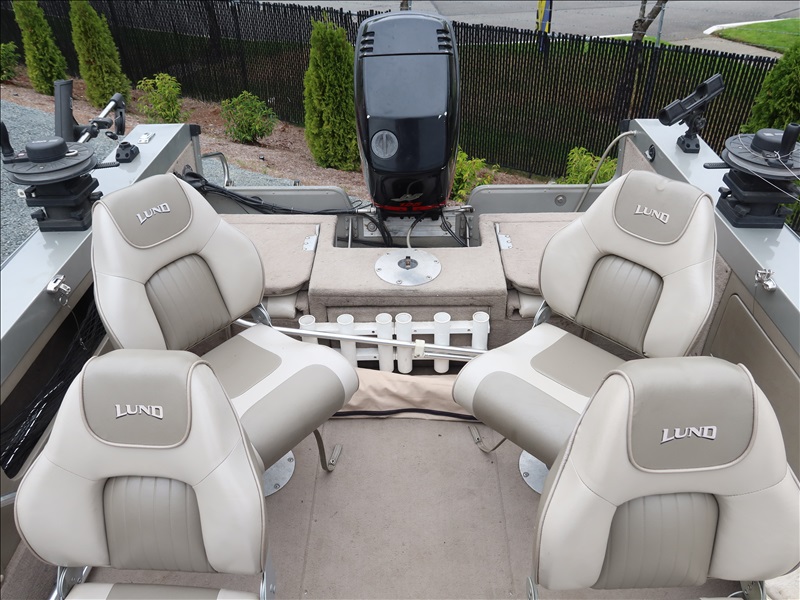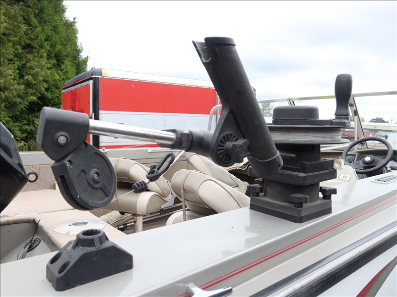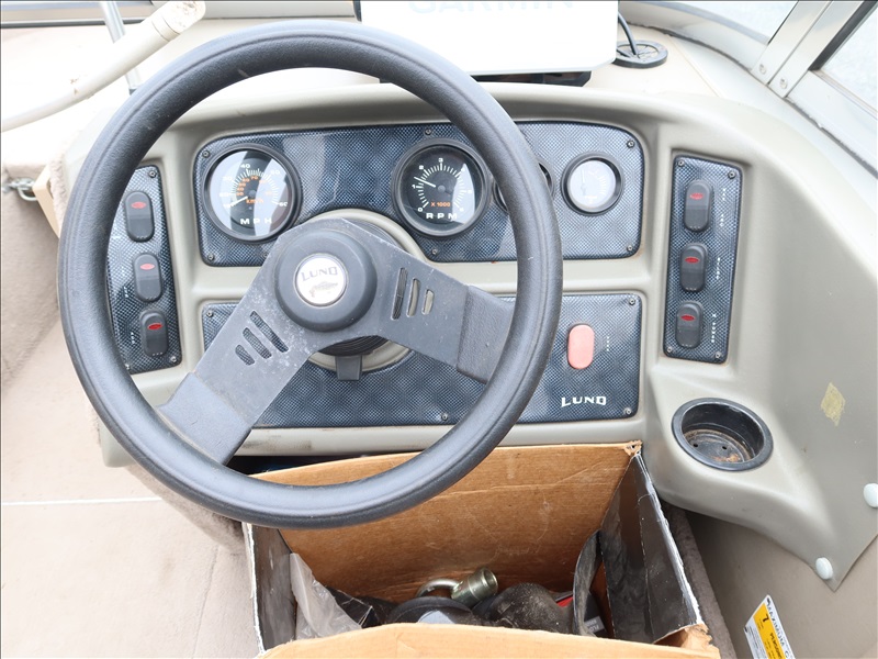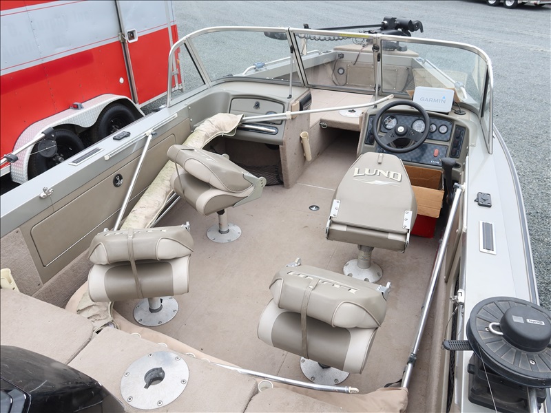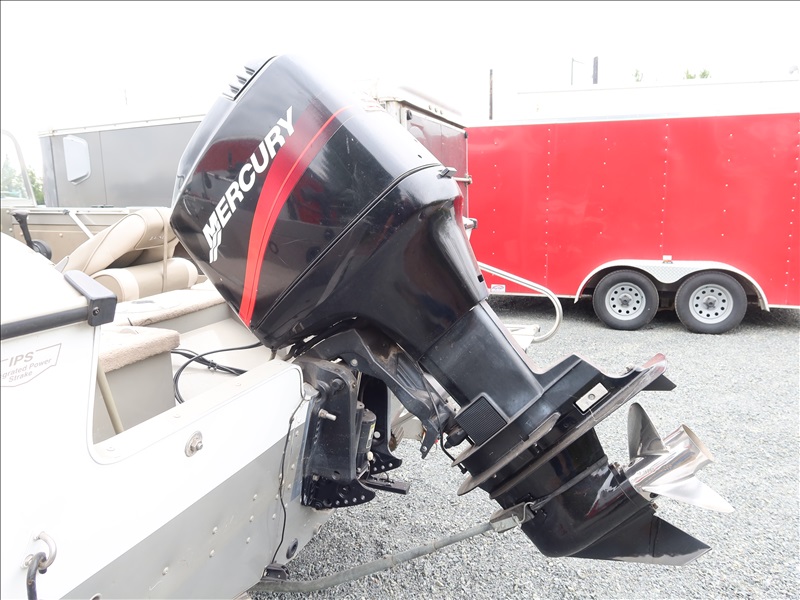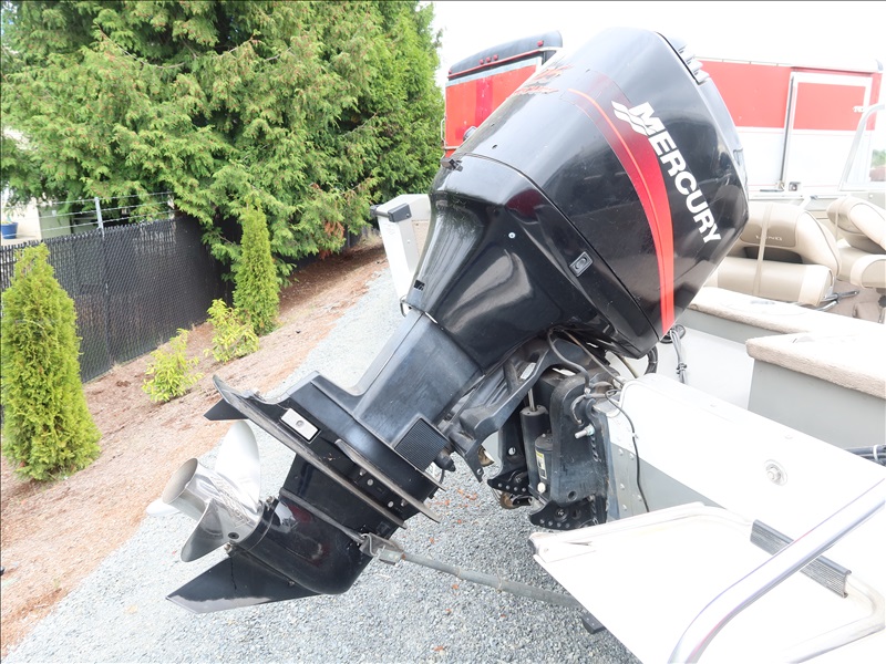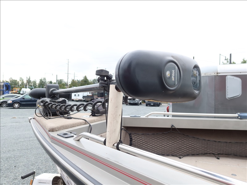 17' OPEN BOW ALUMINUM BOAT W/BIMINI TOP, MERCURY 125 ENGINE, MINN KOTA TERROVA 80 BOW MOUNTED TROLLING MOTOR W/REMOTE, GARMIN ECHOMAP UHD74CV CHART PLOTTER, HUMMINGBIRD HELIX 5 SONAR FISH FINDER, SCOTTY MANUAL DOWN RIGGERS W/2002 MIDWEST 2X4W23SW SHORELAN