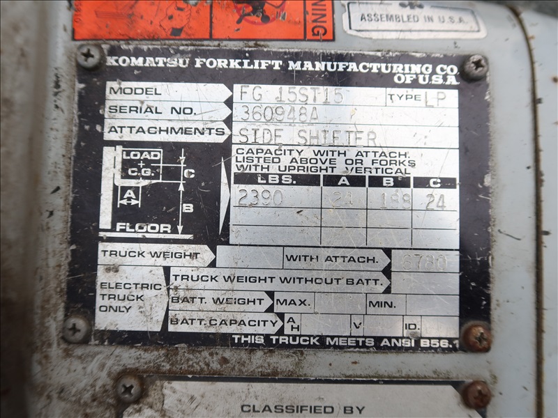 2,390 LB HRT FORKLIFT, 188" LIFT HEIGHT, 3-STAGE MAST, SIDE SHIFT, 4 CYL PROPANE (INOPERABLE, RUNS, DOES NOT MOVE, NEEDS REPAIR, PLEASE PREVIEW)