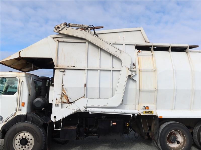 T/A, MAXON LOH-38 FRONT LOAD 38 YD REFUSE TRUCK, 350 HP CUMMINS 8.3L, ALLISON, SPRING BEAM SUSPENSION, A/B