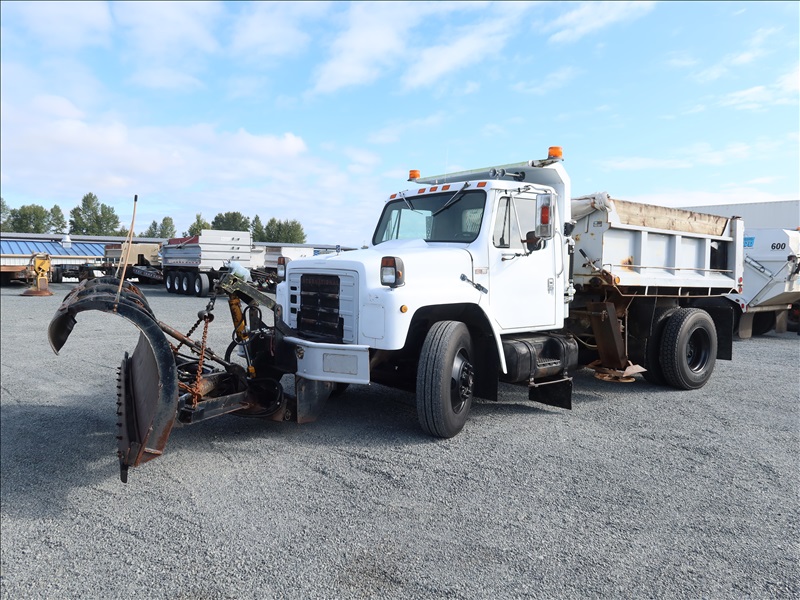 DUMP TRUCK, 10' STEEL BOX, 10' SNOWPLOW, SAND SPREADER, DT466, 10 SPD, SPRING SUSPENSION, 164" W/B, A/B