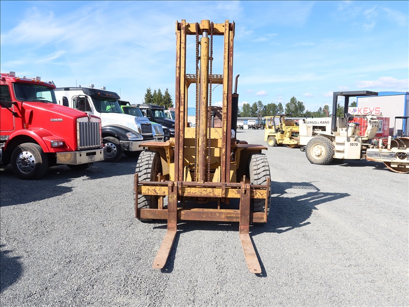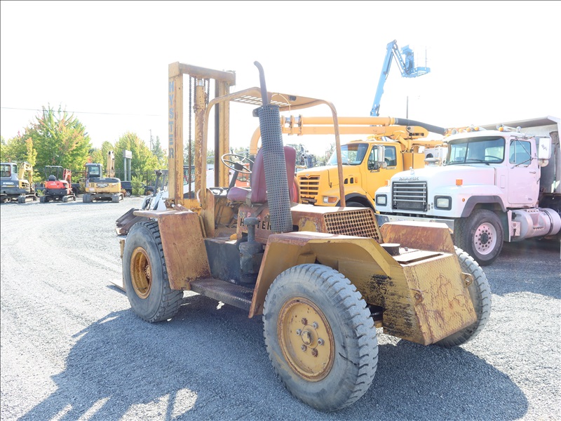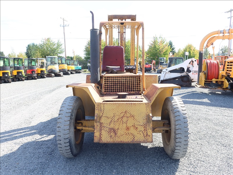 8,000 LB ROUGH TERRAIN FORKLIFT, 164" FORK HEIGHT, 2-STAGE MAST, 4 CYL DIESEL (*NON-RUNNING*, CLUTCH WILL NOT DISENGAGE, LINKAGE OR CLUTCH NEEDS REPAIR)