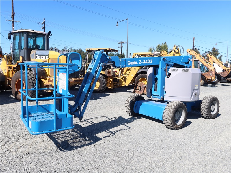 4WD ARTICULATED BOOM LIFT, 34'6" PLATFORM HEIGHT, 22'3" REACH, 500 LB CAP, 110V RECEPTICAL ON PLATFORM, KUBOTA WG972-GL-ET