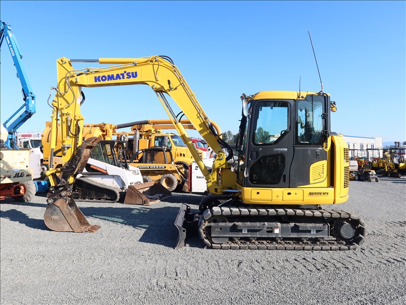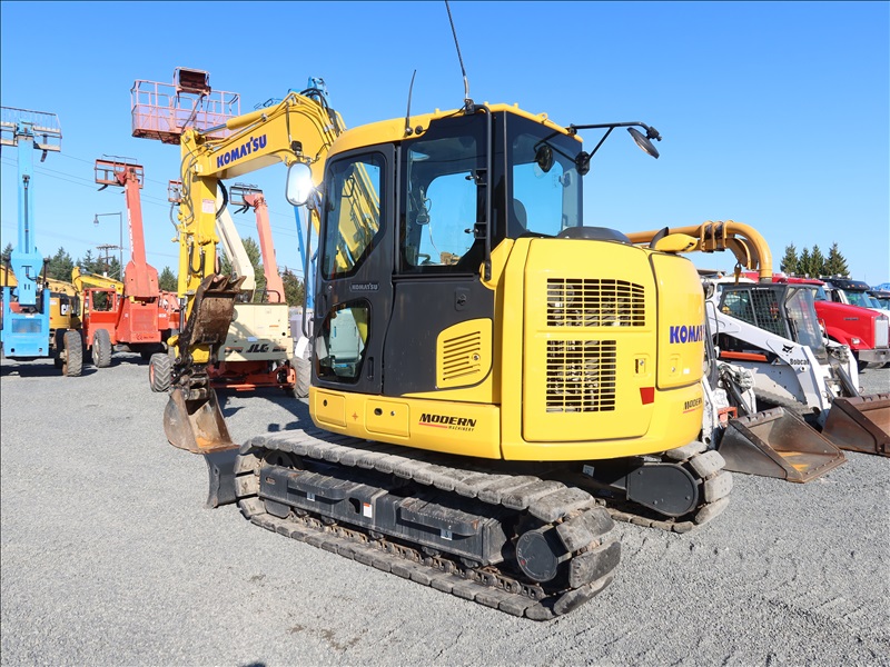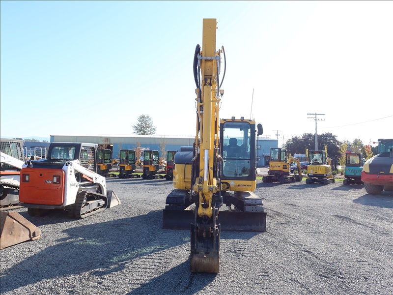 HYDRAULIC EXCAVATOR, 67.7 HP SAA3D95E-1-A, SWING BOOM, 7' STICK, AUX HYD, 47" BUCKET, PIN GRABBER, PSM THUMB, BLADE, REAR CAMERA, A/C CAB