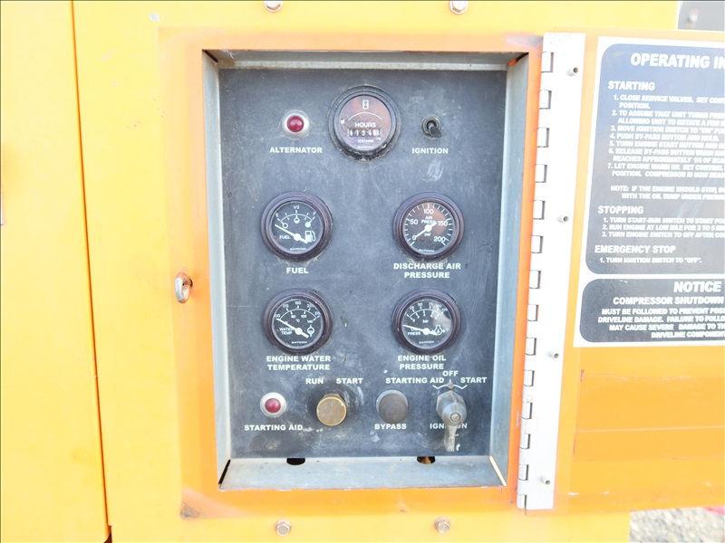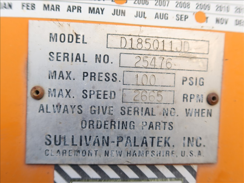 S/A, 185 CFM TRAILER MOUNTED AIR COMPRESSOR, JOHN DEERE 4 CYL DIESEL ENGINE, SPRING SUSPENSION, 205/75R15