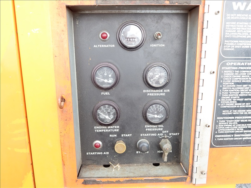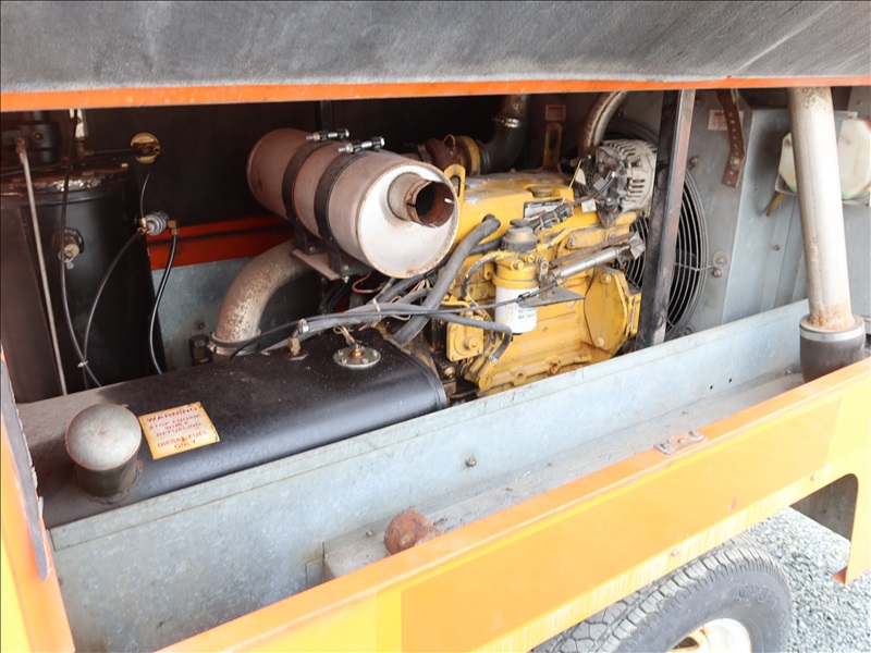 S/A, 185 CFM TRAILER MOUNTED AIR COMPRESSOR, CAT 4 CYL DIESEL ENGINE, 205/75D15 (*INOPERABLE, WATER IN OIL, RUNS & OPERATES, POSSIBLE HEAD GASKET, PLEASE PREVIEW)