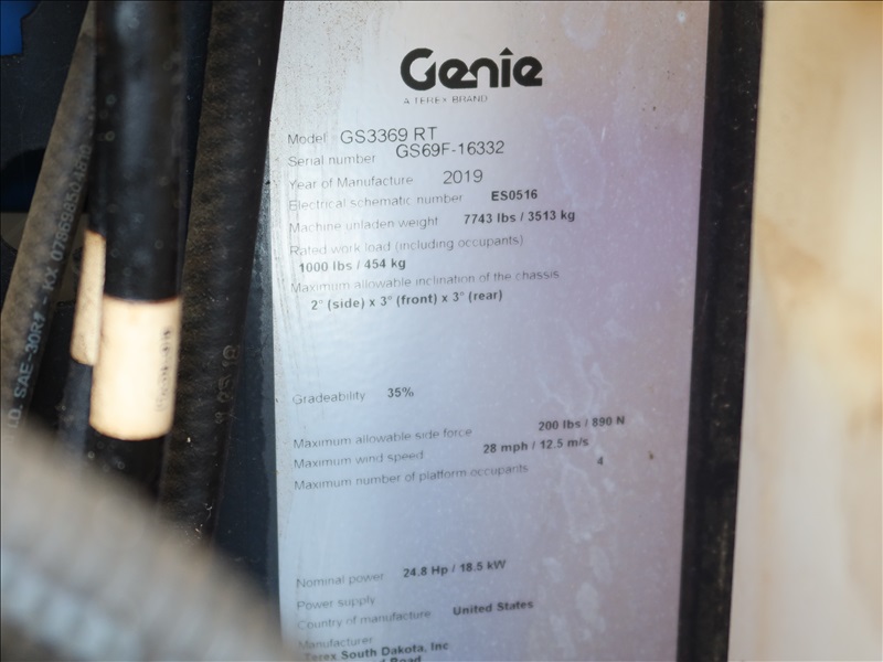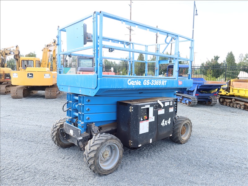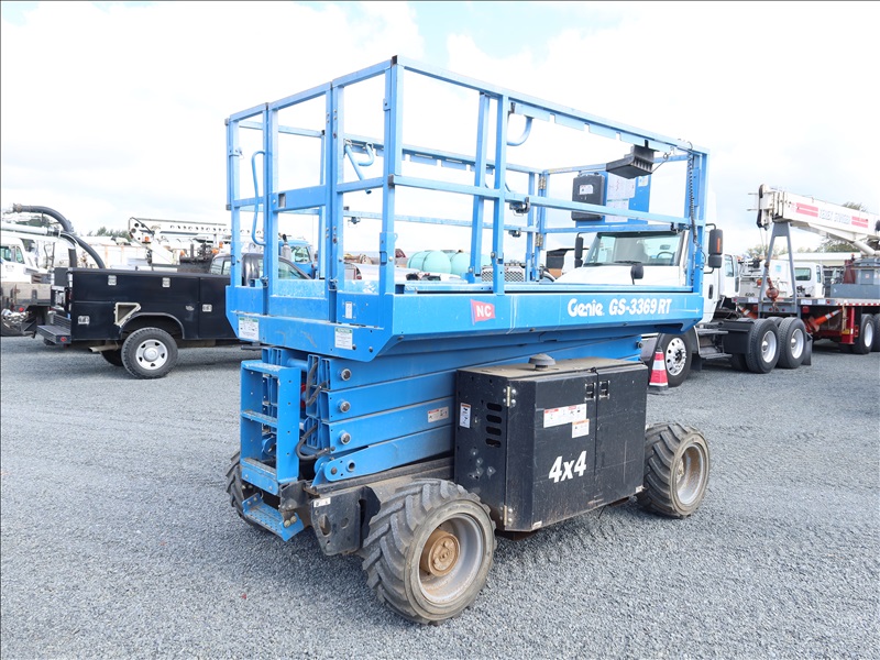 4X4 ROUGH TERRAIN SCISSOR LIFT, 38'8" WORKING HEIGHT, 1,000 LB CAP, 24.8 HP KUBOTA D1105, FOAM FILLED TIRES