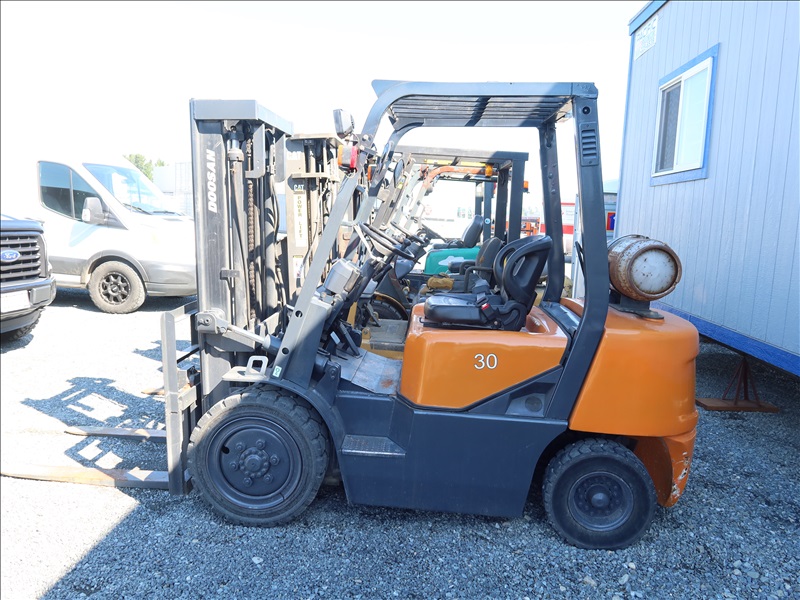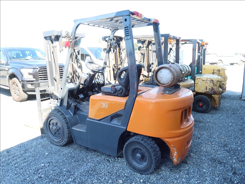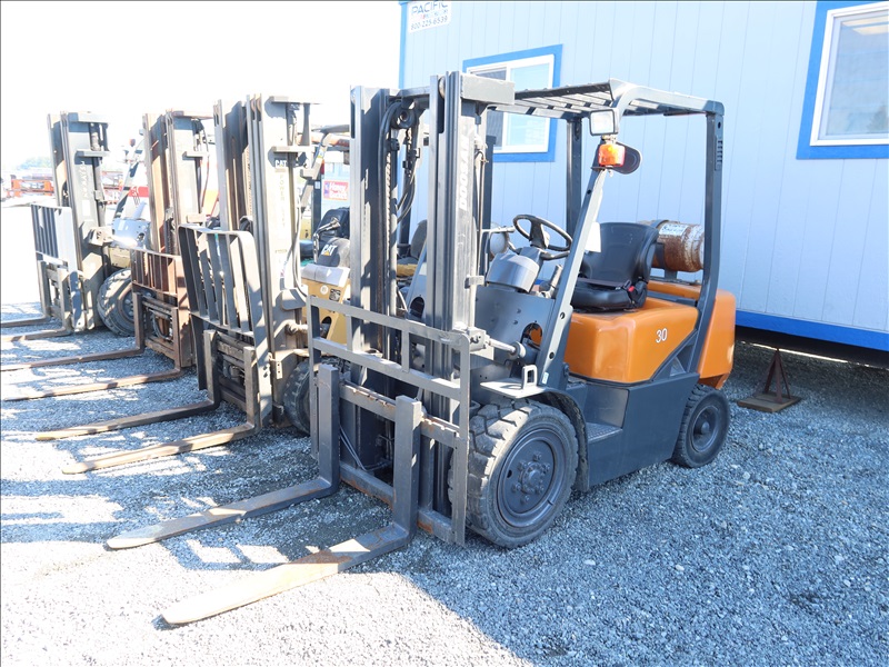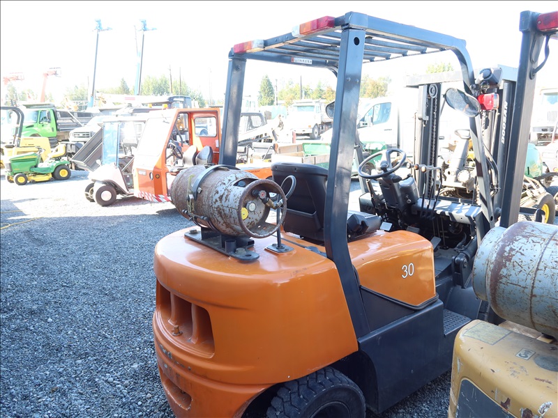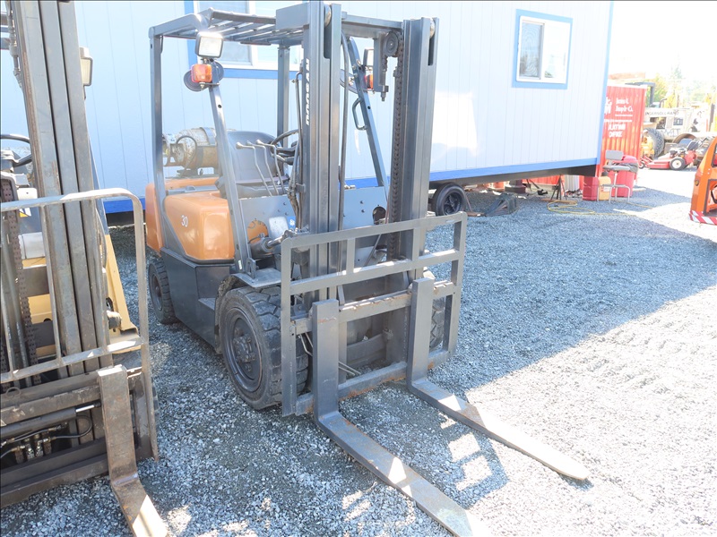 SOLID TRACTION TIRE FORKLIFT, 117" FORK HEIGHT, 2-STAGE MAST, 4 CYL LPG