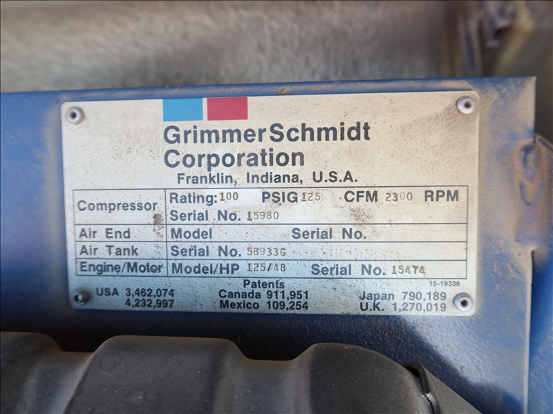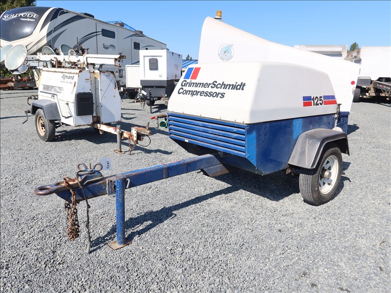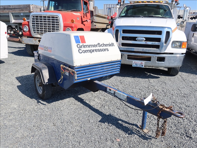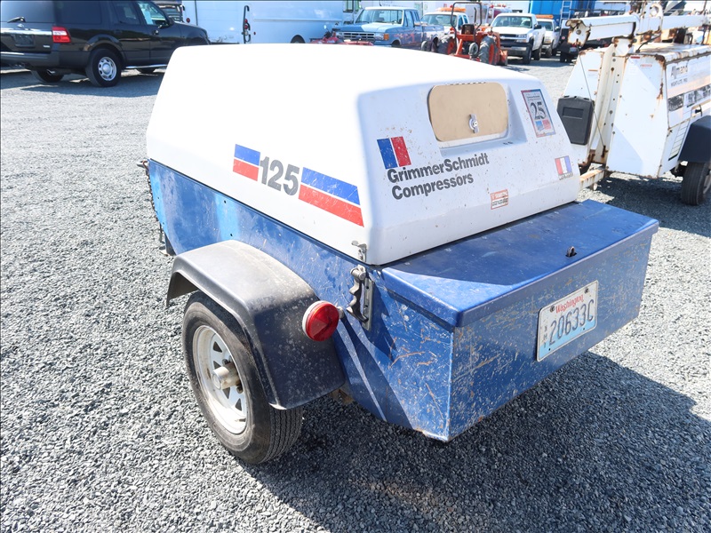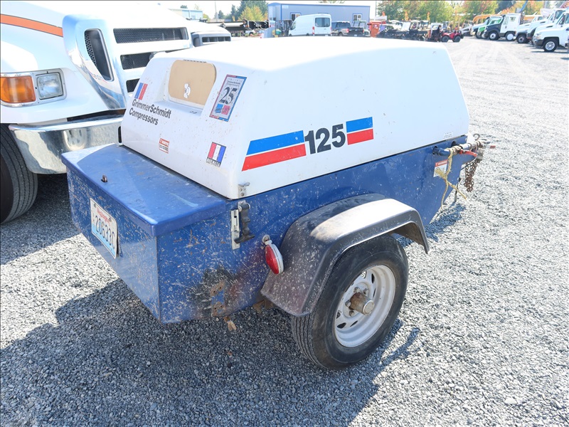 S/A, 125 CFM TRAILER MOUNTED AIR COMPRESSOR, FORD 4 CYL DIESEL GAS ENGINE, 165/80B13