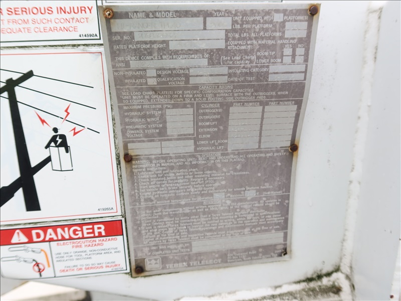 BUCKET TRUCK, TEREX HI-RANGER, TPL40, 3,500 LB BUCKET LIFT, INT'L DT466, AUTO (*INOPERABLE, ELECTRICAL ISSUE, WILL NOT TURN OVER, PLEASE PREVIEW*)