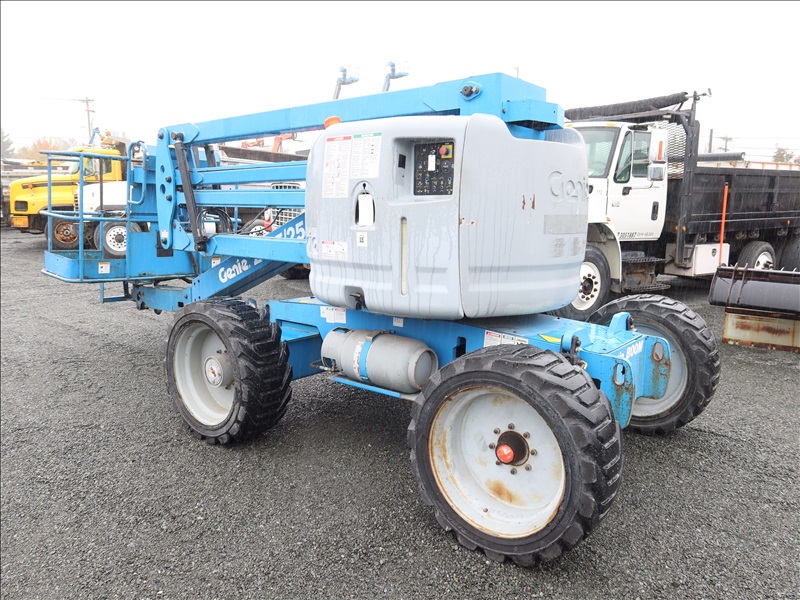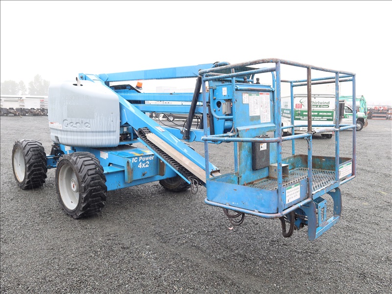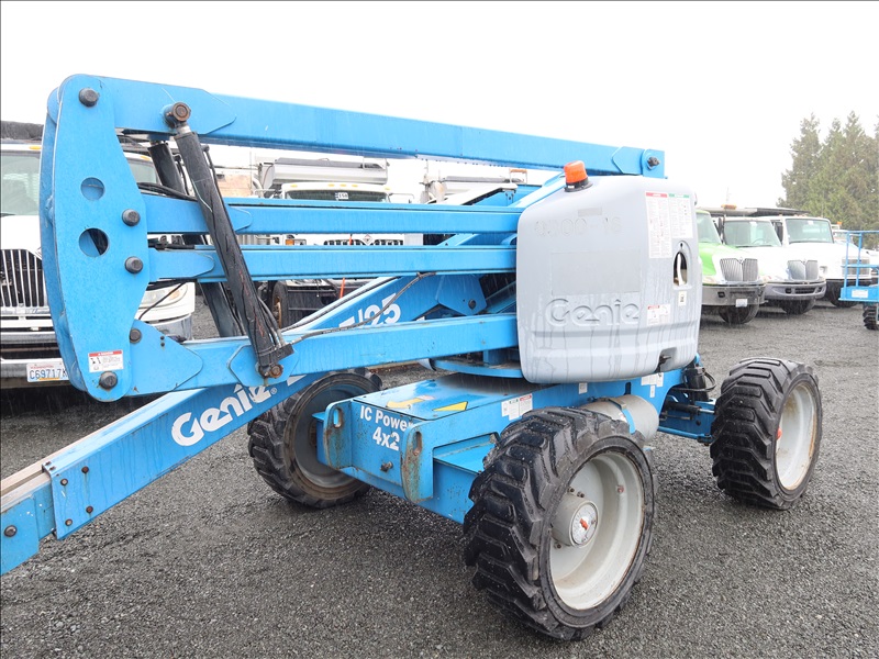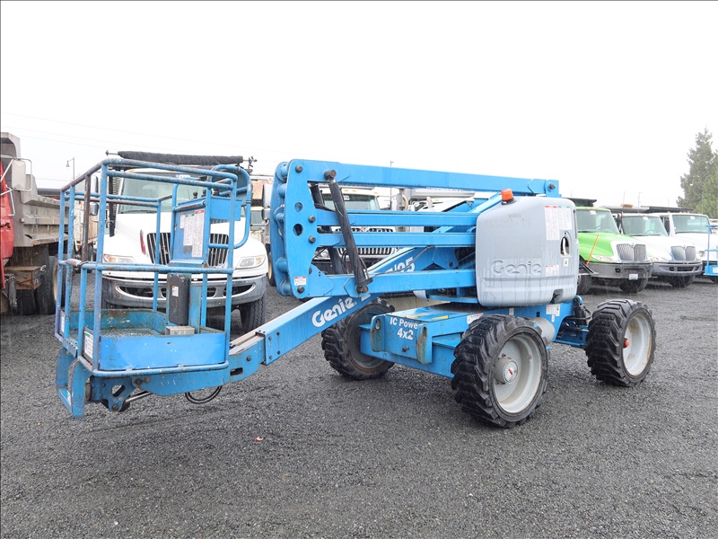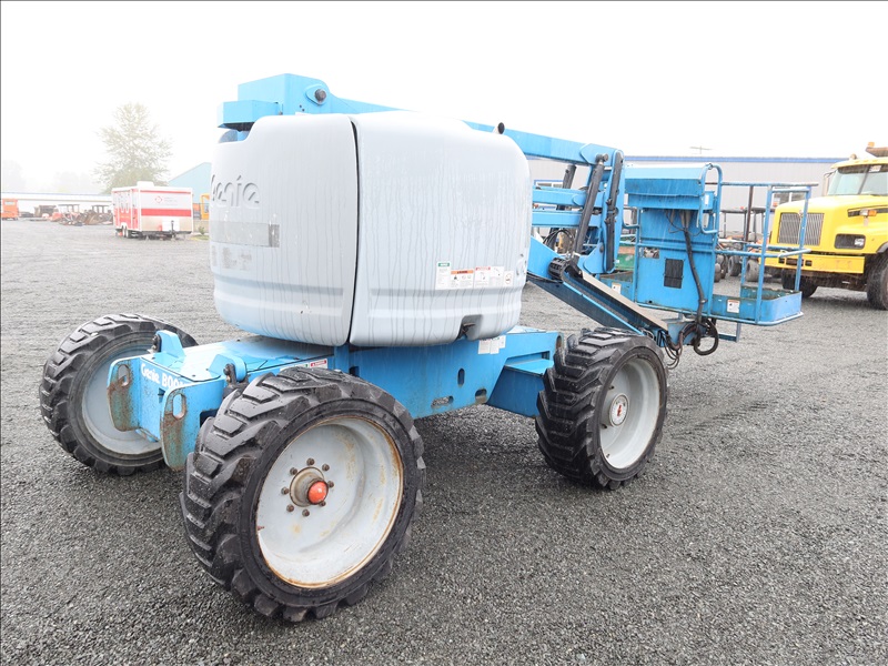 2WD ARTICULATED BOOM LIFT, 45'6" PLATFORM HEIGHT, 25' REACH, 500 LB CAP, 110V RECEPTACLE ON PLATFORM, 4 CYL LPG