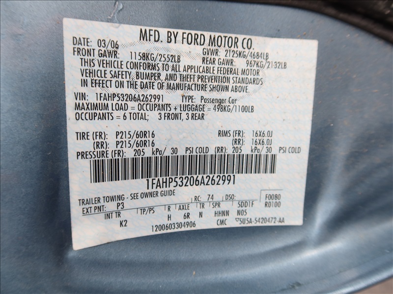 2006 FORD TAURUS 4DR SEDAN