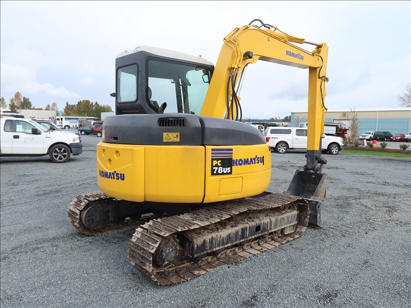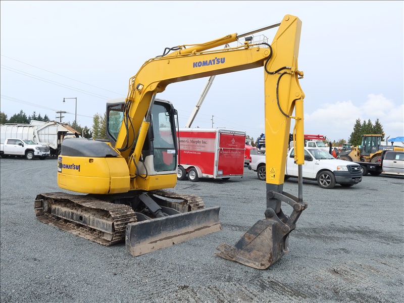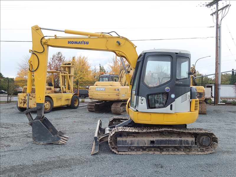 HYDRAULIC EXCAVATOR, 4 CYL DIESEL, 7'4" STICK, 26" BUCKET, BLADE, CAB (CAB DOOR NEEDS REPAIR)