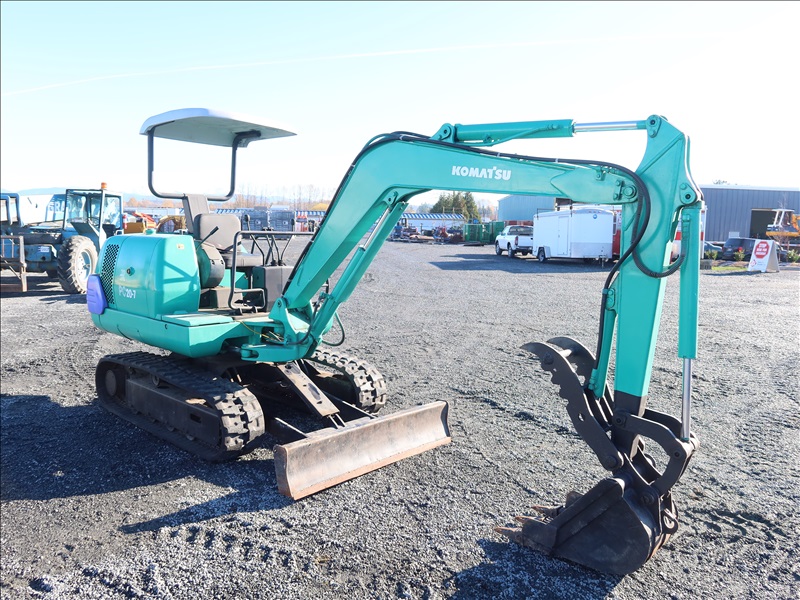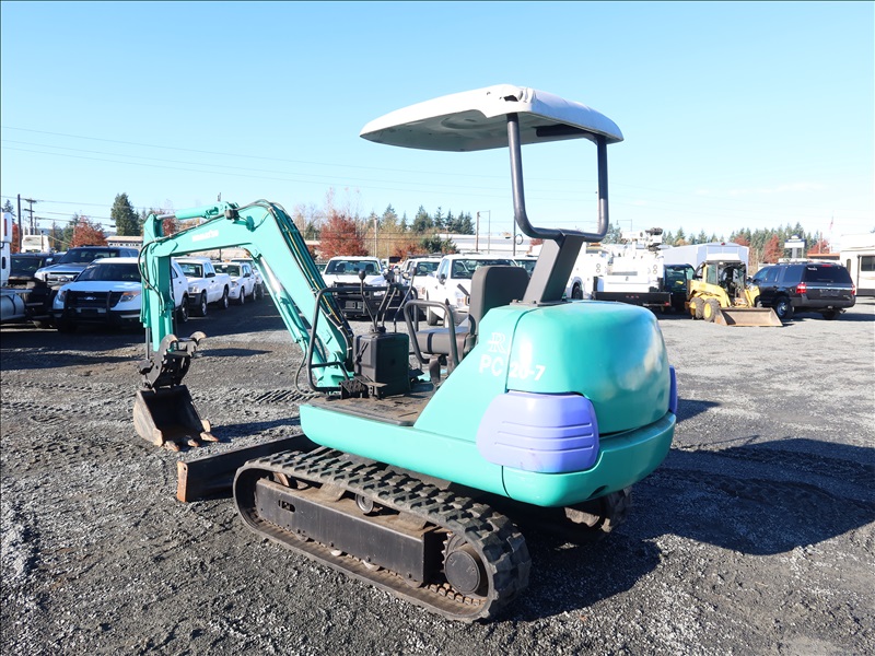 MINI EXCAVATOR, 3D84N-2H, SWING BOOM, 17" BUCKET, HYD THUMB, BLADE, RUBBER TRACKS, CANOPY (UNABLE TO READ HOUR METER)