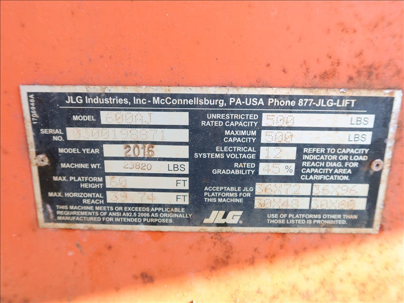 2016 JLG 600AJ TELESCOPIC BOOM LIFT