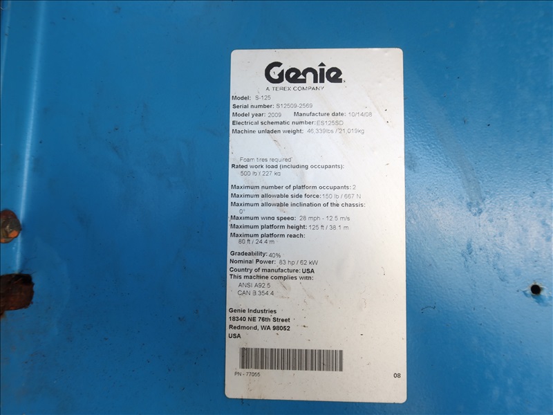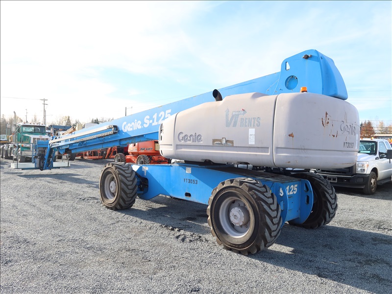 4WD TELESCOPIC BOOM LIFT, 125' PLATFORM HEIGHT, 80' HORIZONTAL REACH, 500 LB CAPACITY RECEPTICAL AT PLATFORM, 83 HP PERKINS 804D-T