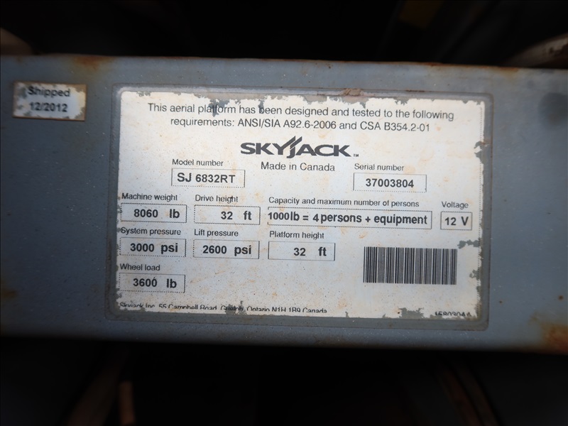 2012 SKYJACK SJ6832RT SCISSOR LIFT