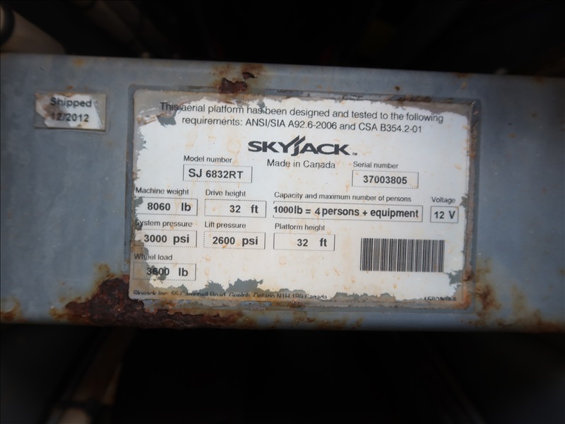 2012 SKYJACK SJ6832RT SCISSOR LIFT