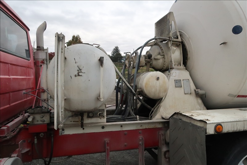 QUAD AXLE MIXER TRUCK, EM7-300, 9LL, TMMB 11 CU. YD. HYDRAULIC MIXER, DROP AXLE, STRONG ARM SINGLE AXLE BOOSTER, WATER SYSTEM, 38,000 REARS, 20,000 FRONT (UNIT #108)