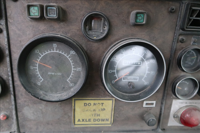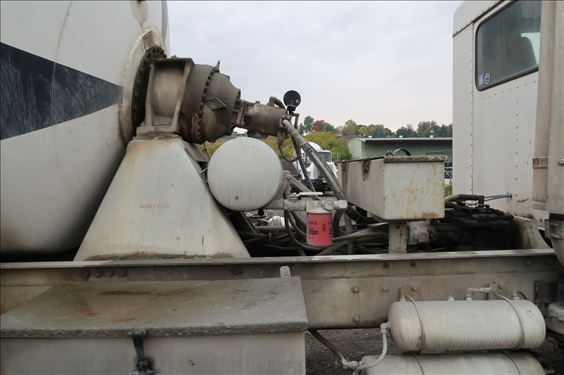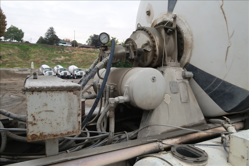 TRI-AXLE MIXER TRUCK, CAT 3306, 7LL, TMMB 10-1/2 CU. YD. HYDRAULIC MIXER, SQR100 REARS W/5.29 RATIO, 20,000 FRONT, BEAM SUSPENSION, STRONG ARM SINGLE AXLE BOOSTER, WATER SYSTEM (UNIT #99)