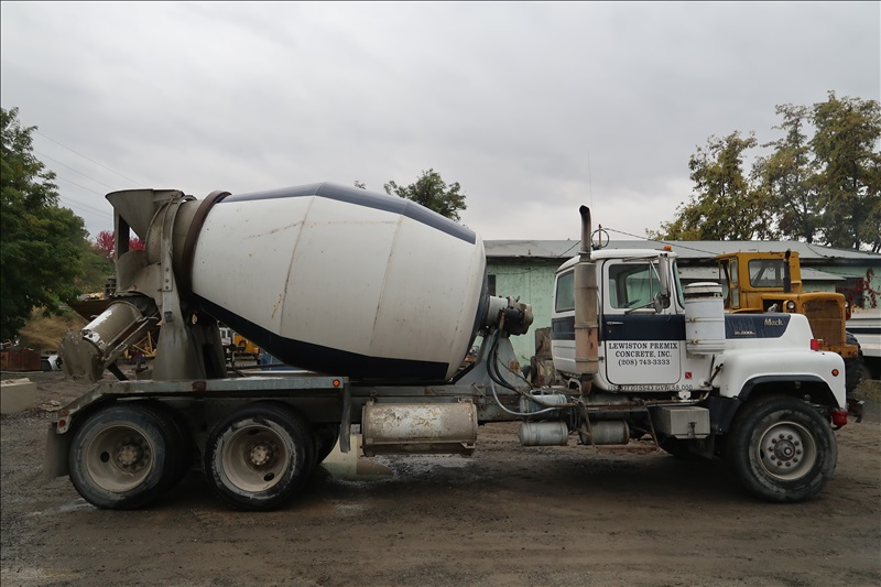 TANDEM AXLE MIXER TRUCK, 6-CYL DIESEL, 5+4, CHALLENGE 8 CU. YD. HYDRAULIC MIXER, BLOCK BEAM SUSPENSION, ALUMINUM FRAME (UNIT #93)