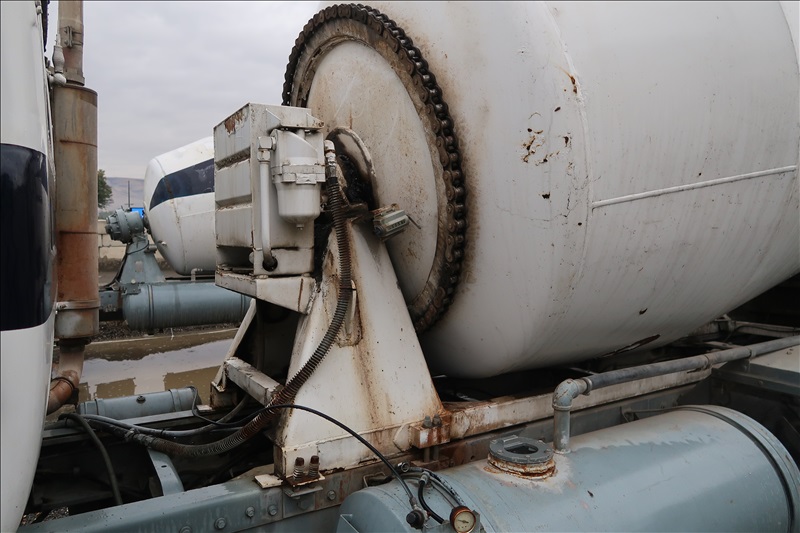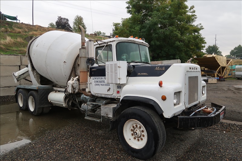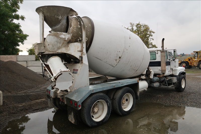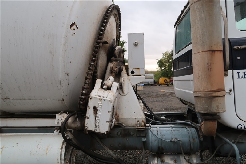 TANDEM AXLE MIXER TRUCK, 6-CYL DIESEL, 5+4, CHALLENGE 10 CU. YD. CHAIN MIXER, BLOCK BEAM SUSPENSION, ALUMINUM FRAME, WATER SYSTEM(UNIT #89)