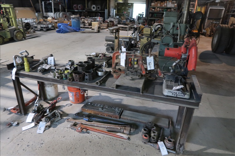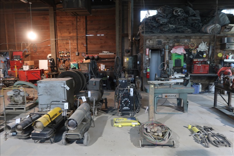 WELDERS; TORCH SET; ROD OVEN; GAS PUMP; (2) COMPRESSORS; SHOP PRESS; GAS CONCRETE FLOAT; SHOP HEATERS; WINONA SEAT & GUIDE MACHINE; ENGINE & TRANSMISSION HOISTS; TRANSMISSION JACKS; HYDRAULIC JACKS; POWER TOOLS; LADDERS; FUEL & OIL TANKS; BARREL CARTS; ELECTRIC MOTORS; ELECTRICAL SUPPLIES; POWER SCREED; (500+/-) ECOLOGY BLOCKS; (3) OLD JERSEY FORMS & (1) TRANSIT FORM; 800' OF CURB FORMS; (2) SETS OF CHALLENGER COOK BROS. CHUT ASSEMBLES