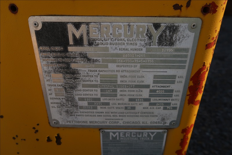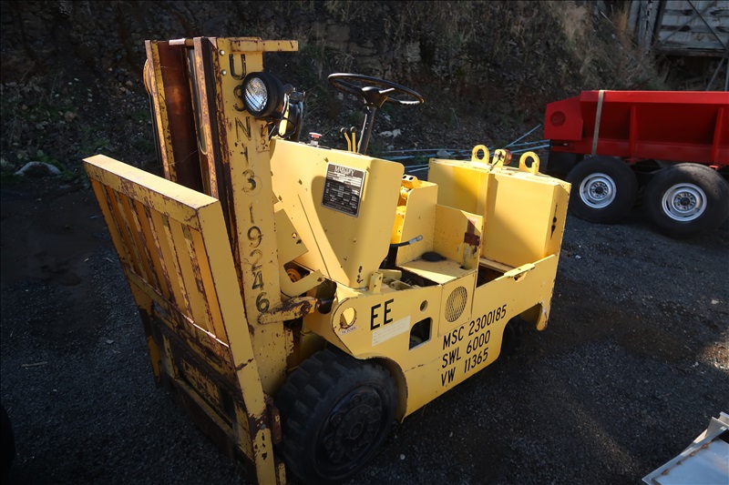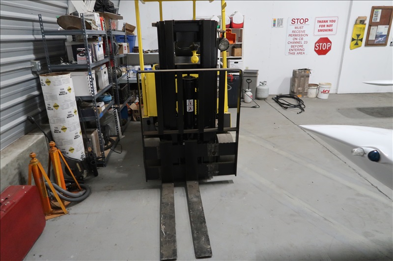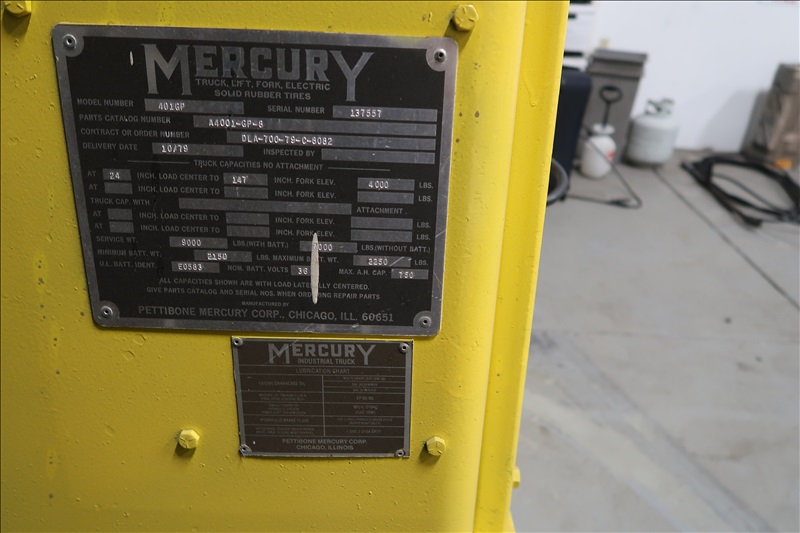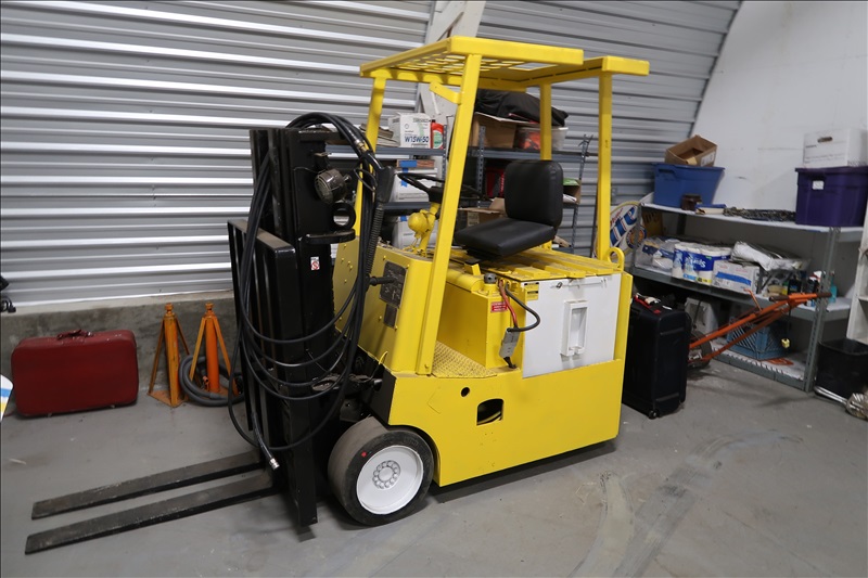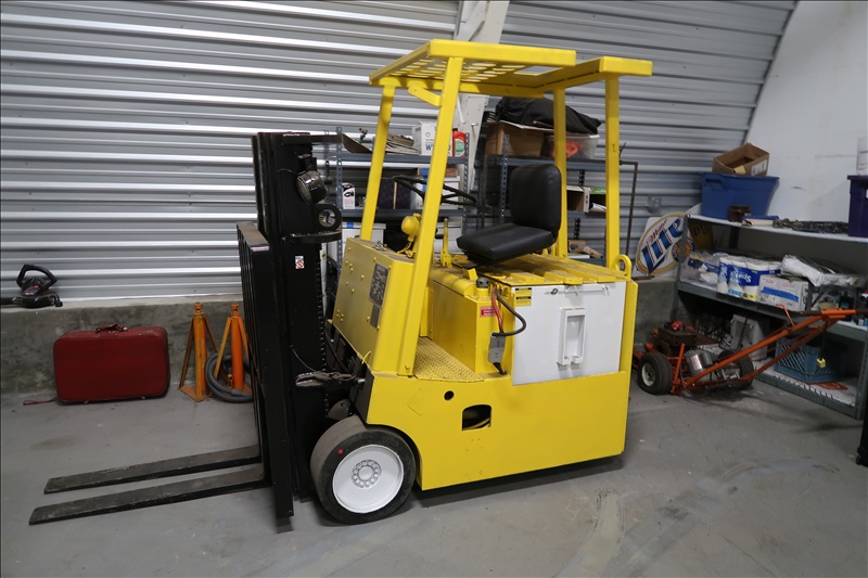 4,000 LB. CAPACITY ELECTRIC FORKLIFT, 36V BATTERY W/CHARGER, 147" 3-STAGE BOXCAR SPECIAL MAST W/38" FORKS, SOLID TIRES, S/N:137557, HOUR METER READS:265 (THIS FORKLIFT WAS ON THE U.S.S. ENTERPRISE) & (2) PARTS MACHINES, S/N:127910 & 12790 (APPROX. 9,000 WITHOUT CHARGER) (LOCATED IN GRANGEVILLE, ID)