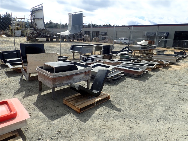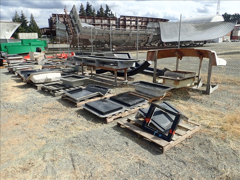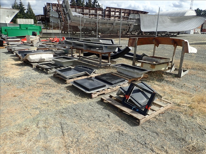 FORMER SAN JUAN YACHTS MOLD FOR SJ40, Hull stbd half, Hull port half, Main/Aft deck, Aft deck version 1, Fwd lower deck 1, Fwd lower deck 2, Aft deck inside overhead liner, Flybridge exterior, Flybridge interior liner, Pilot House mold with sun roof, Pilot House mold for fly bridge, 47 Misc small parts molds