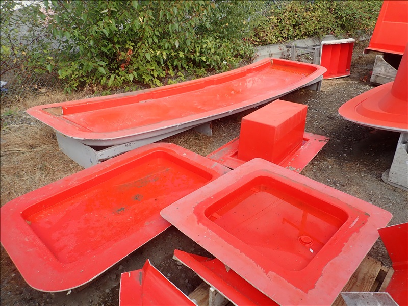 FORMER SAN JUAN YACHTS MOLD FOR SJ48, Hull stbd half, Hull port half, Fly bridge, Sole deck, Pilot house, Transom Seating, 2 shaft tunnel, Fly bridge Console,44 Misc small parts molds