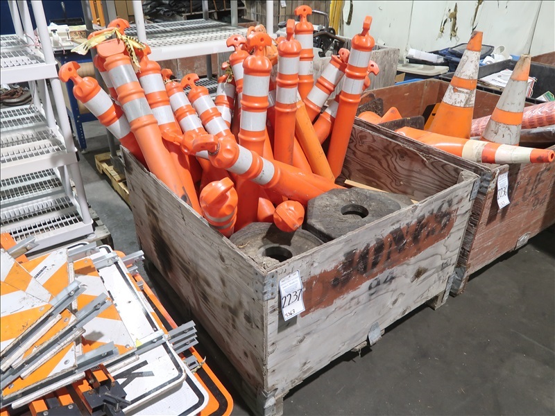 LOT, ASSORTED REFLECTIVE CANDLESTICK CONES W/BASES IN THIS BIN (BIN NOT INCLUDED)