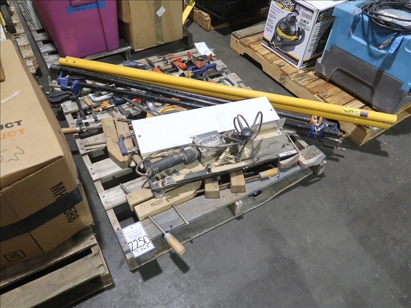 LOT, ASSORTED CLAMPS & CONTRACTORS SUPPLIES SON THIS PALLET