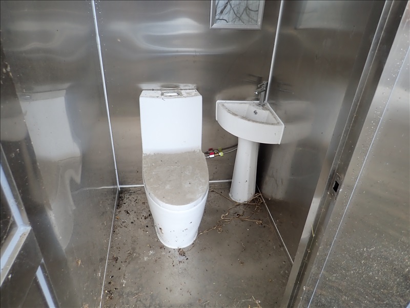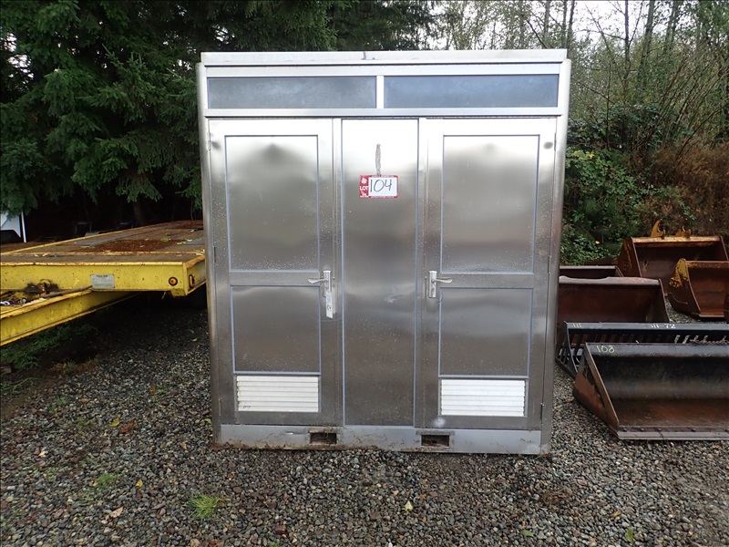 7'L X 51"W X 8'H SS PORTABLE RESTROOM W/TOILET, SINK, FAN & FORK POCKETS, 110V