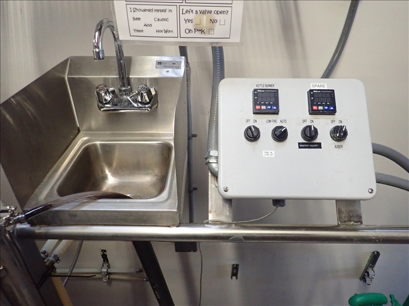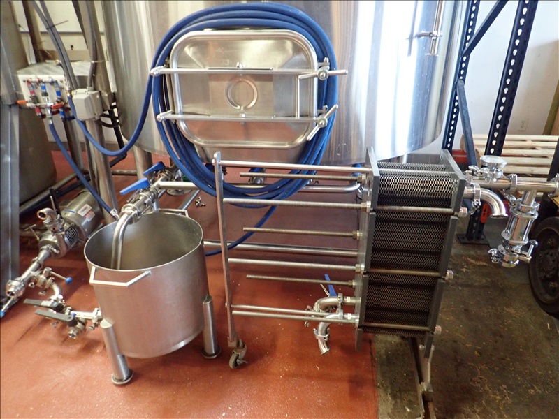 15 BARREL 2-VESSEL BREWHOUSE, MASH LAUDER TUN W/GRIST HYDRATOR, GRANT, SPARGE, VORLAUF, TEMP MIXING STATION, 3HP PLOW, NATURAL GAS FIRED KETTLE, 35 BARREL ELECTRIC HLT, THERMALINE T8 HEAT EXCHANGER, PUMP, CAT WALK, STAIRS, HAND WASH, SPARE PARTS & ACCESSORIES