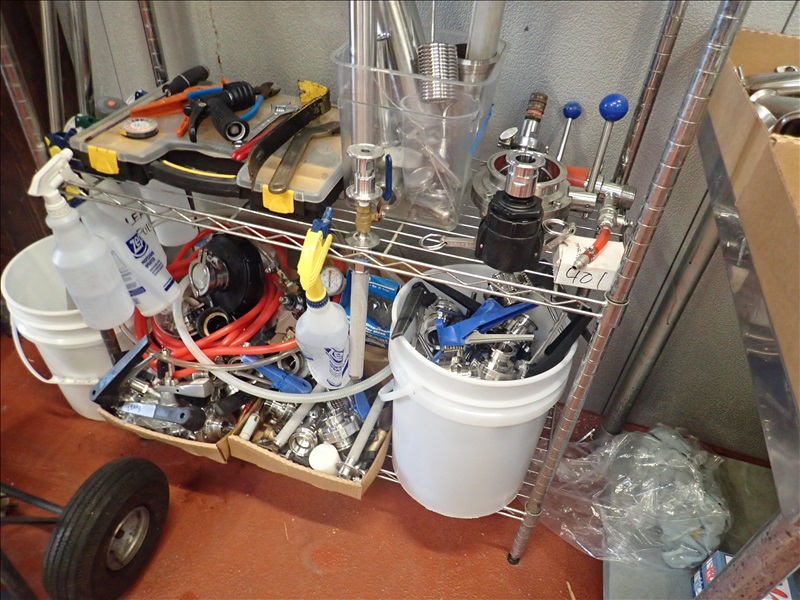 ASSORTED S/S VALVES, FITTINGS, COUPLERS, GASKETS & BREWING SUPPLIES
