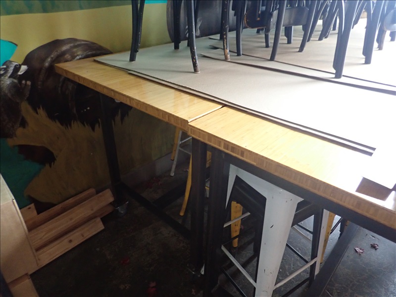 (2) 36"X120" CUSTOM BUILT STEEL FRAMED BAR TABLES