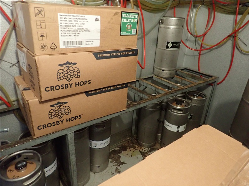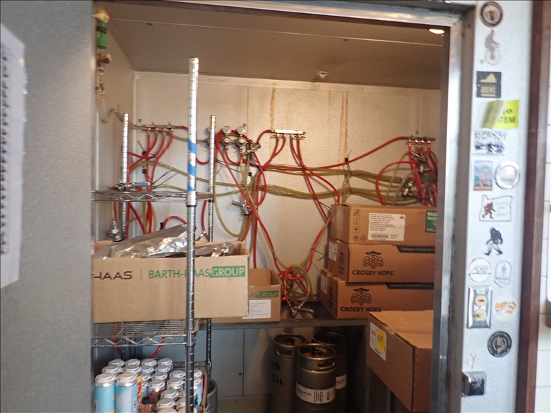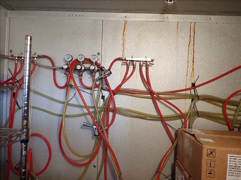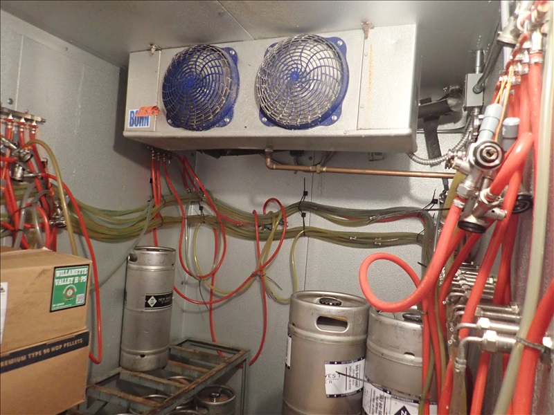 APPROX. 68"X128"X92" WALK-IN KEG COOLER, BOHN 2-FAN EVAPORATOR, 22-HEAD TAP, GAUGES, LIGHT, MAN DOOR