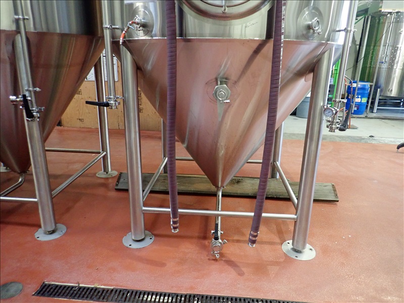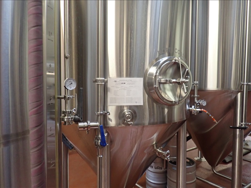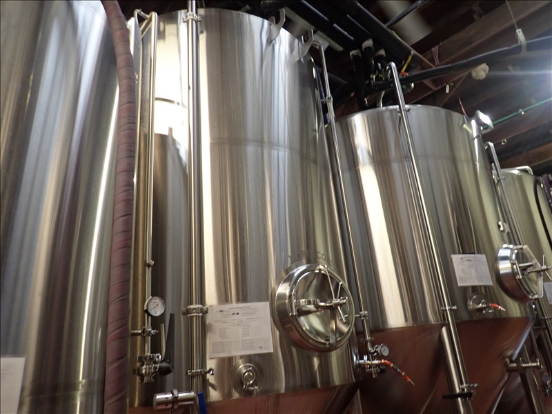 30 BARREL S/S JACKETED FERMENTATION TANK, TEMP PROBE, VALVES, FRONT GATES