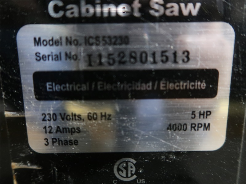 TABLE SAW, 5 HP, 230V, 3 PHASE