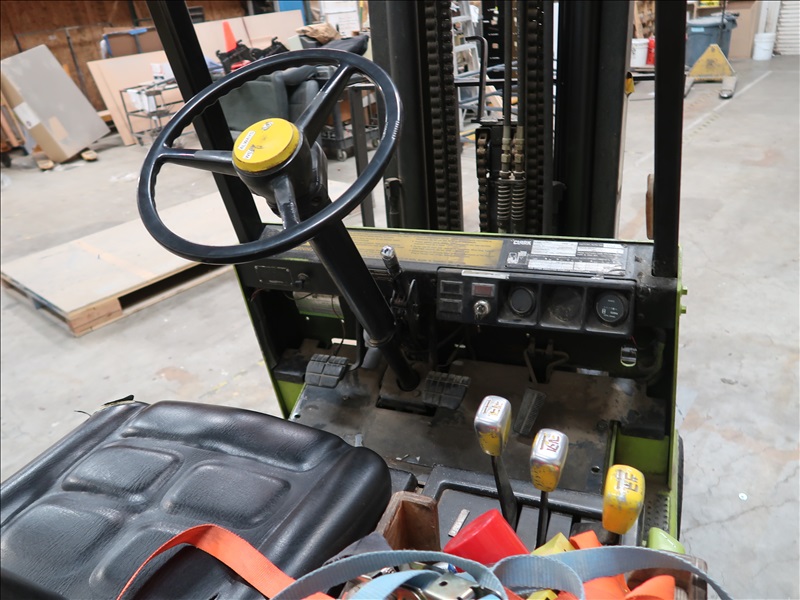 3,500 LB SOLID TIRED FORKLIFT, 188" 3-STAGE MAST, SIDE SHIFT, PROPANE