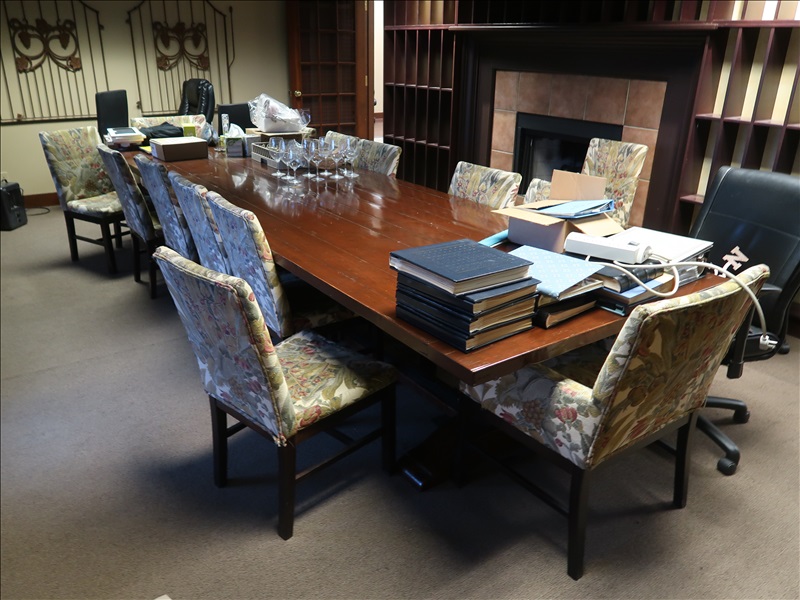 APPROX 48" X 176" WOOD CONFERENCE TABLE W/(14) FABRIC CHAIRS