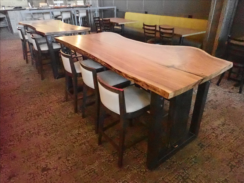 (2) 86" CUSTOM BUILT STEEL FRAMED WOOD SLAB TABLES