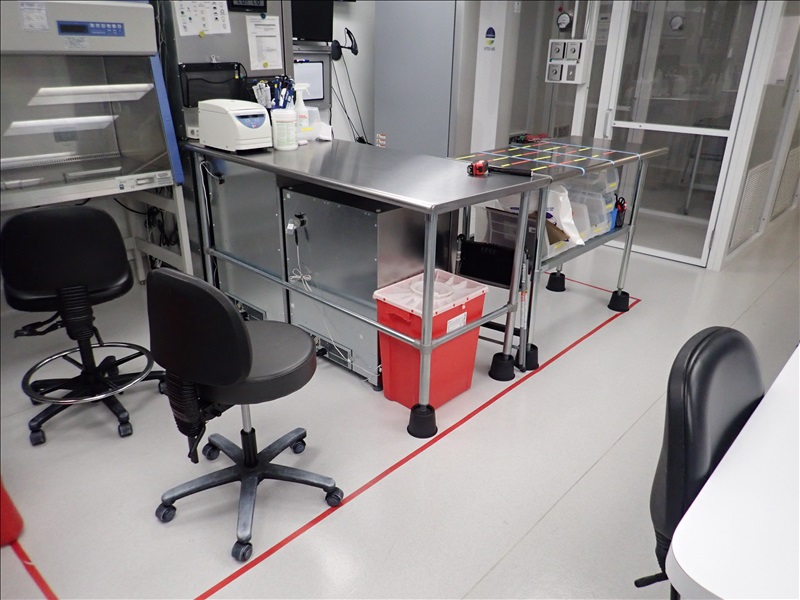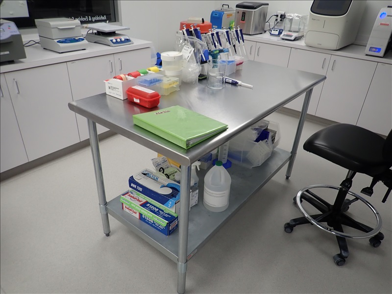 (7) S/S LAB TABLES W/ASSORTED LAB SUPPLIES