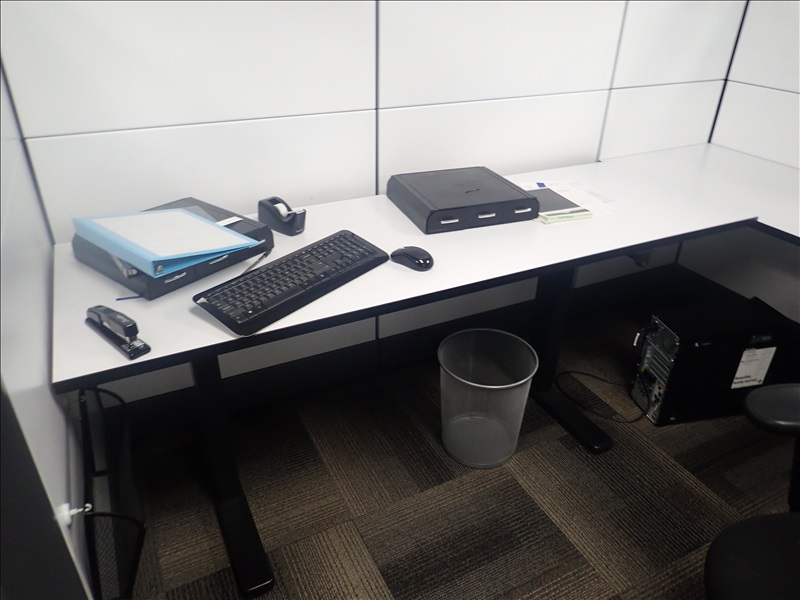4-STATION CUBICLE W/STAND-UP DESKS, MONITORS & CHAIRS