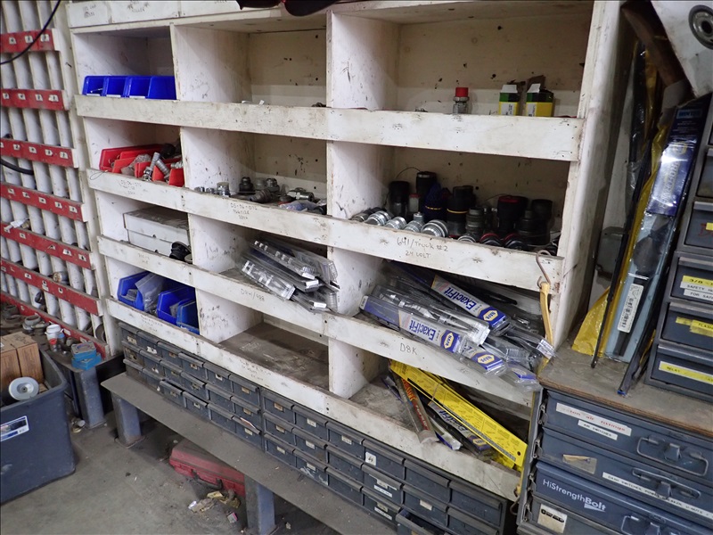 GROUP OF HYDRAULIC FITTINGS, WIPER BLADES & BINS