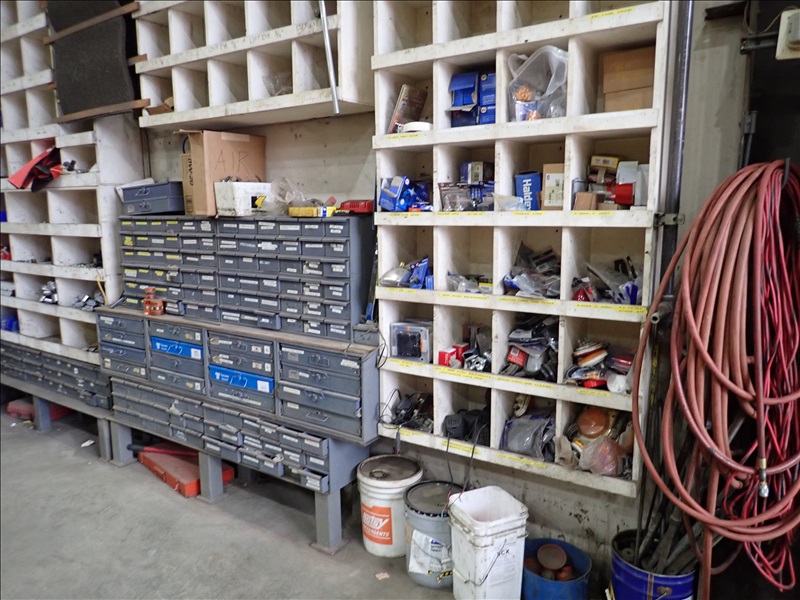 GROUP OF BINS, FASTENERS & REPLACEMENT PARTS