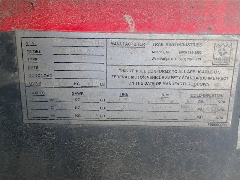 TRI-AXLE SIDE DUMP TRAILER, SPRING SUSPENSION, REAR LIFT AXLE, PUSH BLOCK, ( LOCATED IN MAPLE VALLEY )
