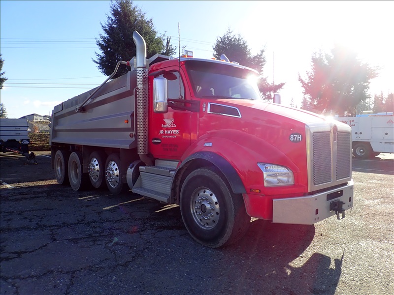 QUAD AXLE DUMP TRUCK, CUMMINS ISX15, 18 SPD, 46,000 REARS, 20,000 FRONT, HAULMAX SUSPENSION, 17' STEEL BOX W/HIGH LIFT GATE, ASPHALT GATES, TARP SYSTEM, (2) DROP AXLES, DOUBLE LOCKERS, ( LOCATED IN MAPLE VALLEY )